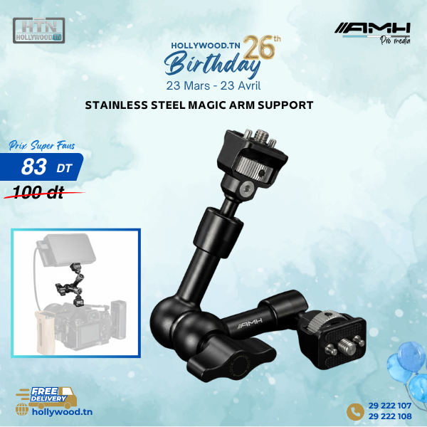 - Type : Magic Arm 7″ en acier inoxydable