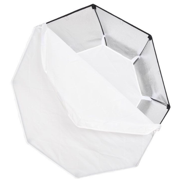 Contenu de la boîte 1 x Softbox 120cm, 1 x Diffuseur interne, 1 x Diffuseur externe, 8 x Tiges d’armature, 1 x Anneau Bowens, 1 x Sacoche